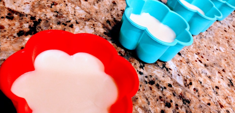 Here’s one of the bars, they pour up smooth and gorgeous and they’re silky to the touch and smell yummy, like all cocoa butter things do. That’s the sugar soap hanging out in the background, drying. It’s been a busy soap weekend.