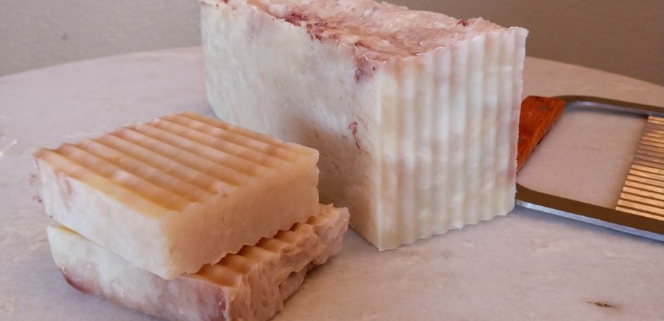 I can’t find the recipe a coworker wants, but I know it’s one of my regular bars of soap made up “nice” to give to people. In this case, that meant it was a vegetarian bar, and I’m not going to do that today because I have an awful lot of tallow to use, and palm oil kinda freaks me out, anyhow, on the sustainability front.
