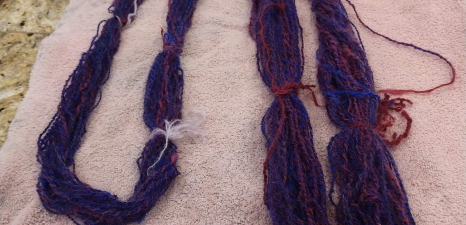 This is a slow weekend, a hard earned day to do not much of anything, which makes it a great day to wash some hand spun yarn. Most of the time blogging about anything involves making things look as appealing as possible, but the truth is, cleaning gorgeous, exciting yarn involves the smell of wet sheep, or in this case sheep and alpaca, and stained towels. There is no point in bleeding dyes onto good towels just for a photo op.